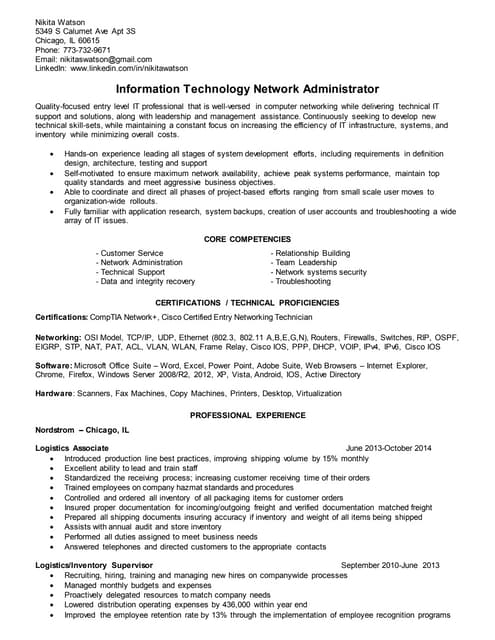 Network administrator resume IT example sample Cisco